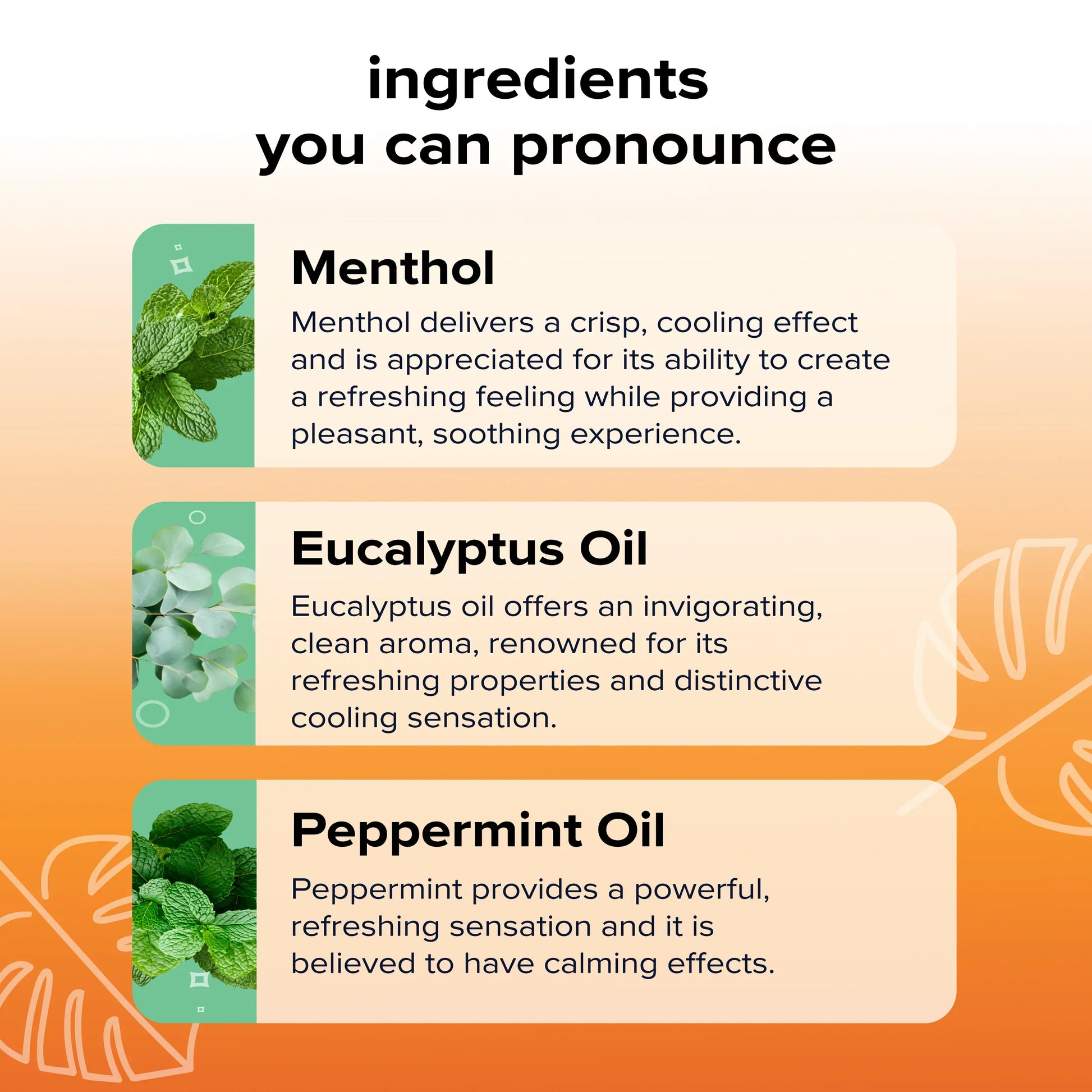 ▪︎ Natural Aromatherapy Formula — Made with cooling essential oils for calming and energizing relief.